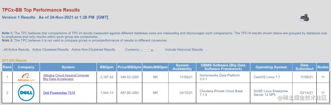 近日,TPC Benchmark Express-BigBench(简称TPCx-BB)公布了最新的世界排名,阿里云自主研发的神龙大数据加速引擎获得了TPCx-BB SF3000排名第一的成绩。
