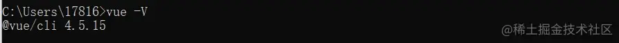 安装成功后可以在终端中通过:vue -V查看,若如下图一样可以显示版本号,则说明安装成功