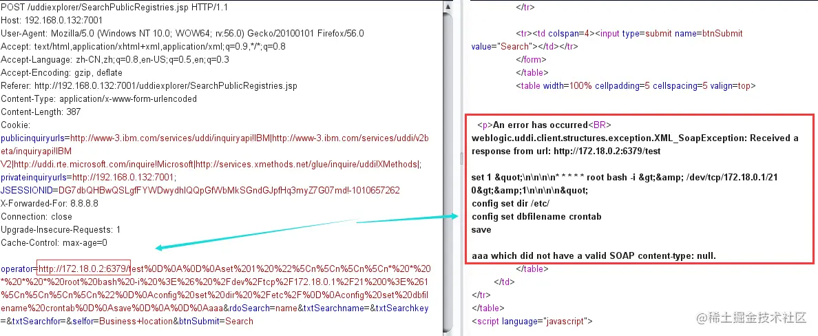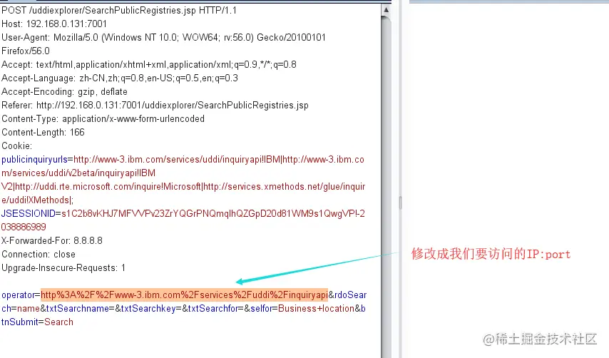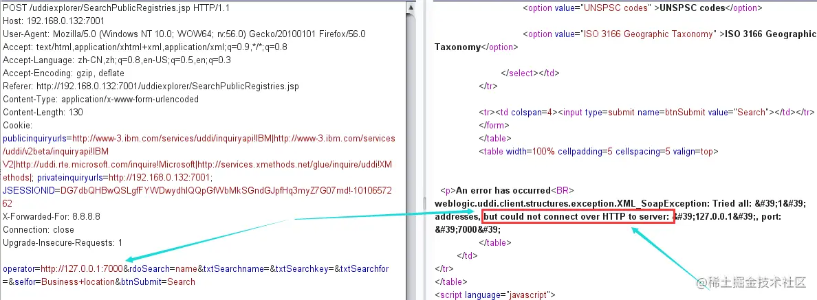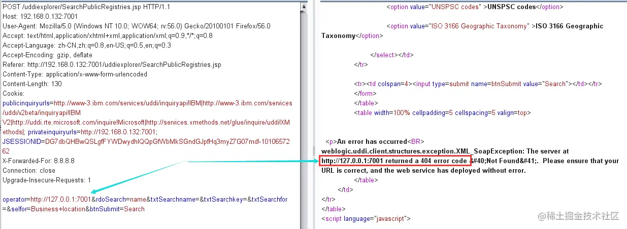 SSRF漏洞存在于http://your-ip:7001/uddiexplorer/SearchPublicRegistries.jsp