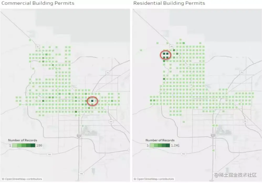大小可以帮助强调重要信息并添加上下文提示,使用大小来表示值配合地图使用的效果也非常好。如果您的可视化中有多个大小相同的数据点,它们会混在一起,很难区分值。