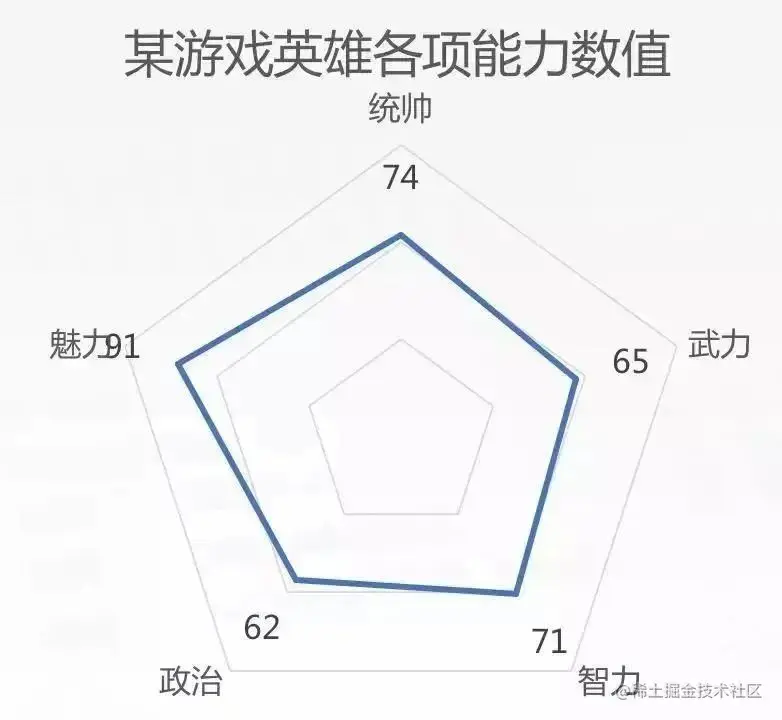 对同一类图形(例如柱状、圆环和蜘蛛图等)的长度、高度或面积加以区别,来清晰的表达不同指标对应的指标值之间的对比。制作这类数据可视化图形时,要用数学公式计算,来表达准确的尺度和比例。