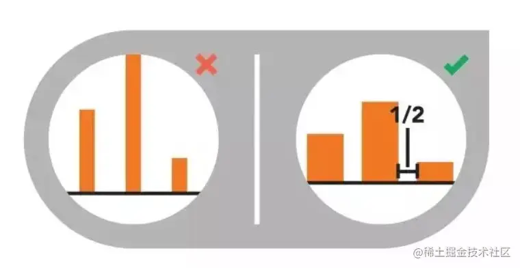 条形图的原理就是通过比较条块的长度来比较值的大小。当基线被改变了,视觉效果也就扭曲了。