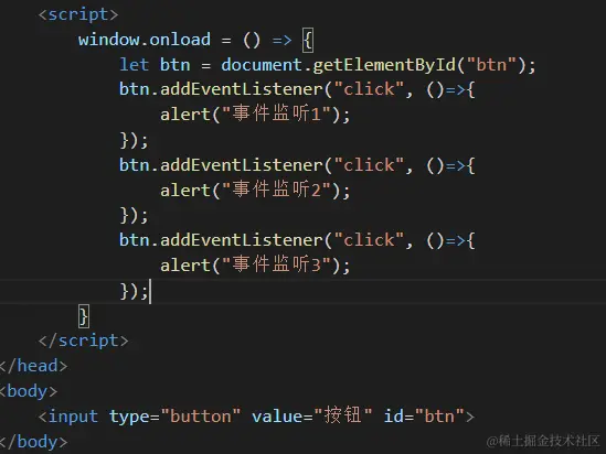 【使用事件监听器可以为同一个元素添加多个相同事件,普通事件处理程序无法完成】