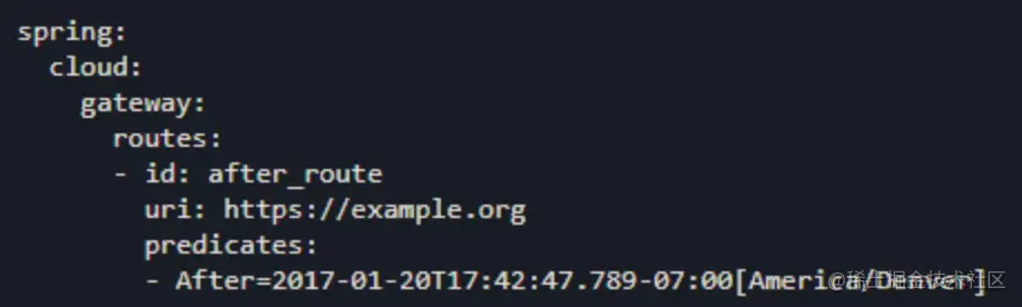 After Route Predicate Factory有一个时间参数,此断言匹配发生在该时间参数之后的请求。