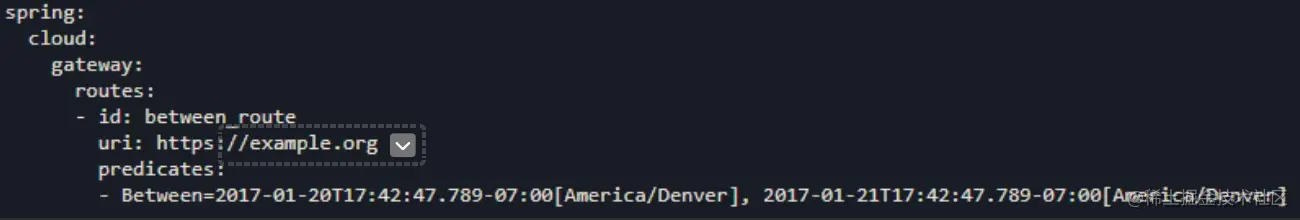 Between Route Predicate Factory 有两个时间参数。此断言匹配发生在这两个时间之间的请求。