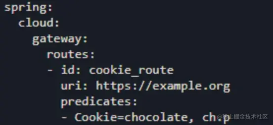 Cookie Route Predicate Factory 有两个参数,包括cookie名称和正则表达式。此断言匹配cookies包括给定的名称和符合正则表达式的值。