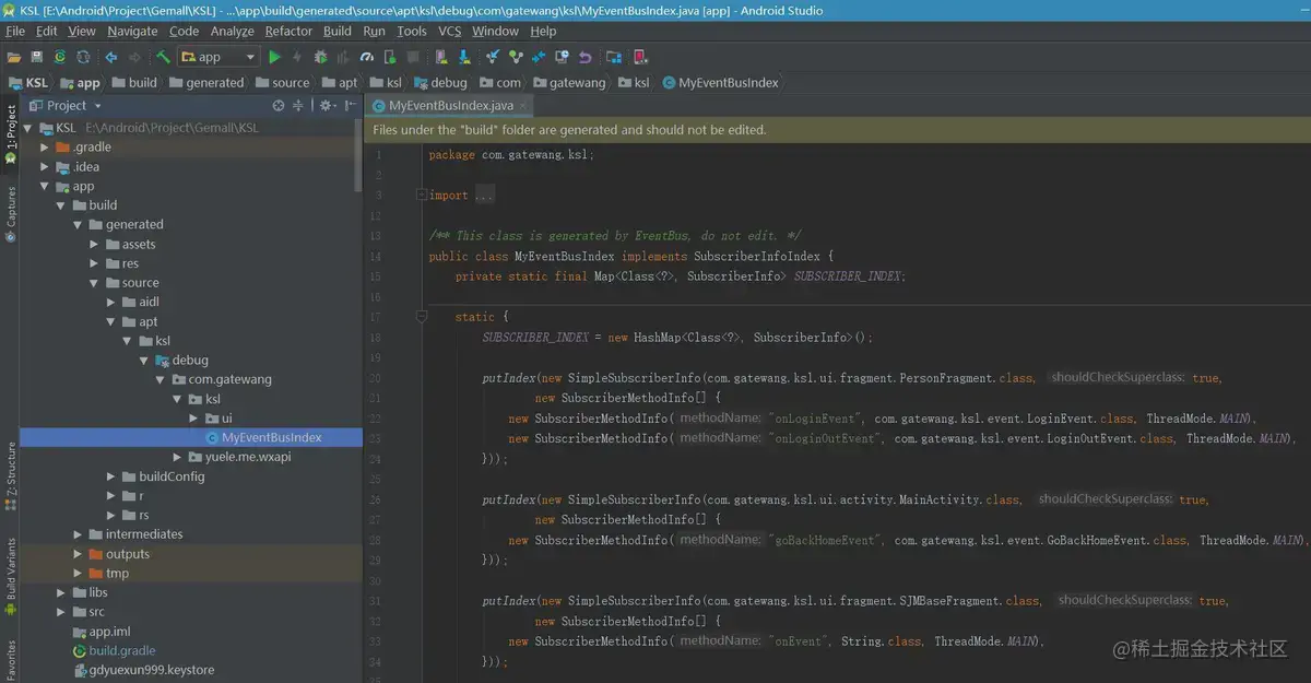 那么它究竟是怎么提升 EventBus 效率的,可以看出来,这个 Apt 插件将那些订阅的方法生成到 MyEventBusIndex 中,那么这样做的好处是什么?试想一下,EventBus 的原理大概是什么样子的,EventBus.register 到底是怎么获取到这个类中被 @Subscribe 修饰的方法信息,相信用过注解的人都知道,注解只能通过反射获取得到。但是 EventBus 使用 Apt 自动生成的 MyEventBusIndex 类中,包含了这个类所有被注解的方法信息(方法名、事件对象、执行的线程等等),因为这样的话就不需要通过反射获取注解上面的信息了,因为这些信息已经被 Apt 自动生成到一个类里面了,在 EventBus.register 的时候会优先判断,有没有这个 MyEventBusIndex 类,有的话就从这个类获取,没有的话再通过反射获取,这样就能有效避免使用反射带来的性能问题