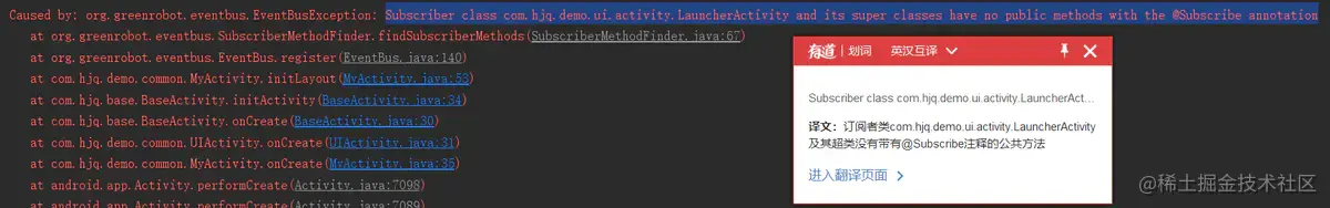 先翻译一下这段报错的提示,这个报错说的是这个 Activity 自己以及它的父类没有任何订阅的方法