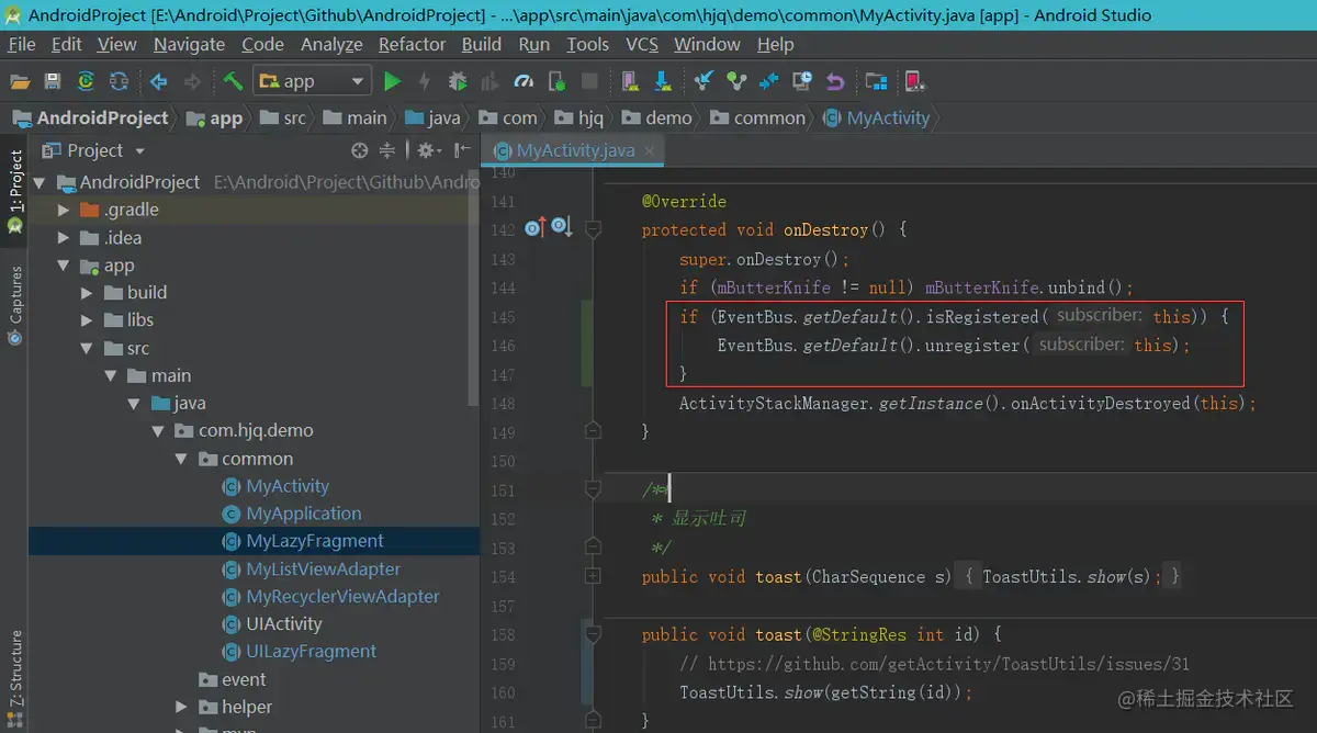 但是我们可以再做一下优化,先判断当前对象有没有注册过 EventBus,有的话再取消注册