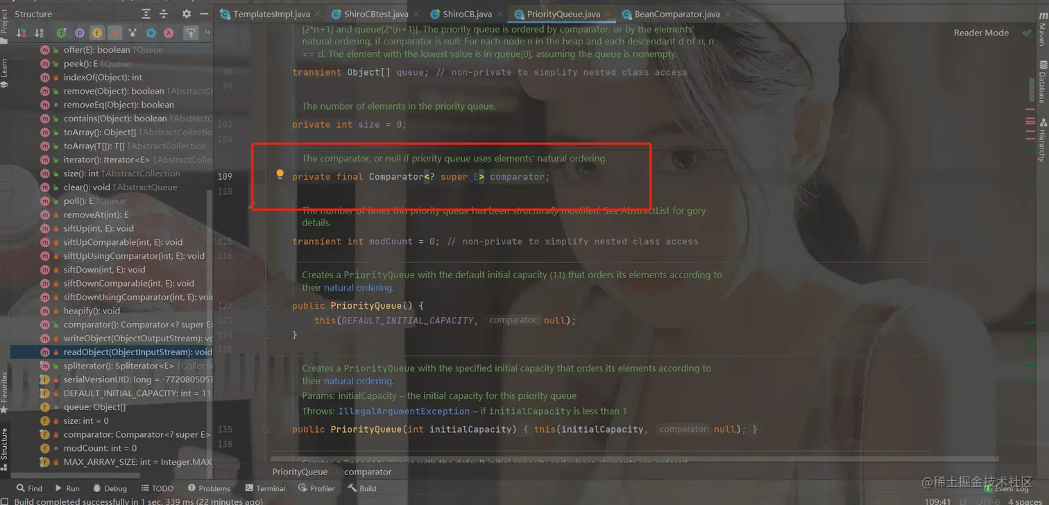//获取comparator属性,将声明的priorityQueue的comparator修改为beanComparator