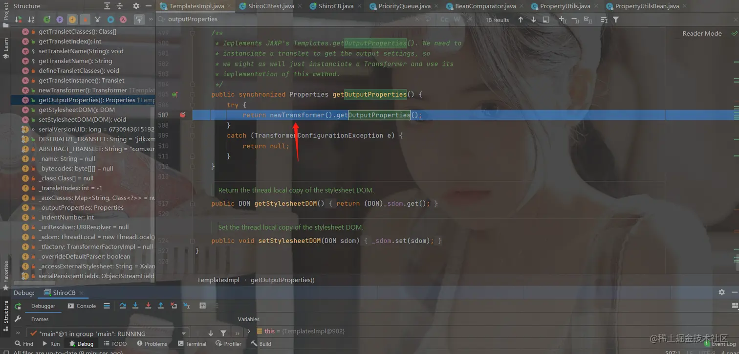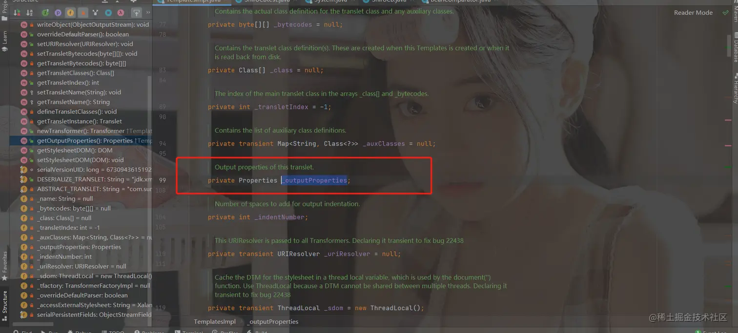 跳转到PropertyUtilsBean类,获取到_outputProperties的get方法。继续跟进