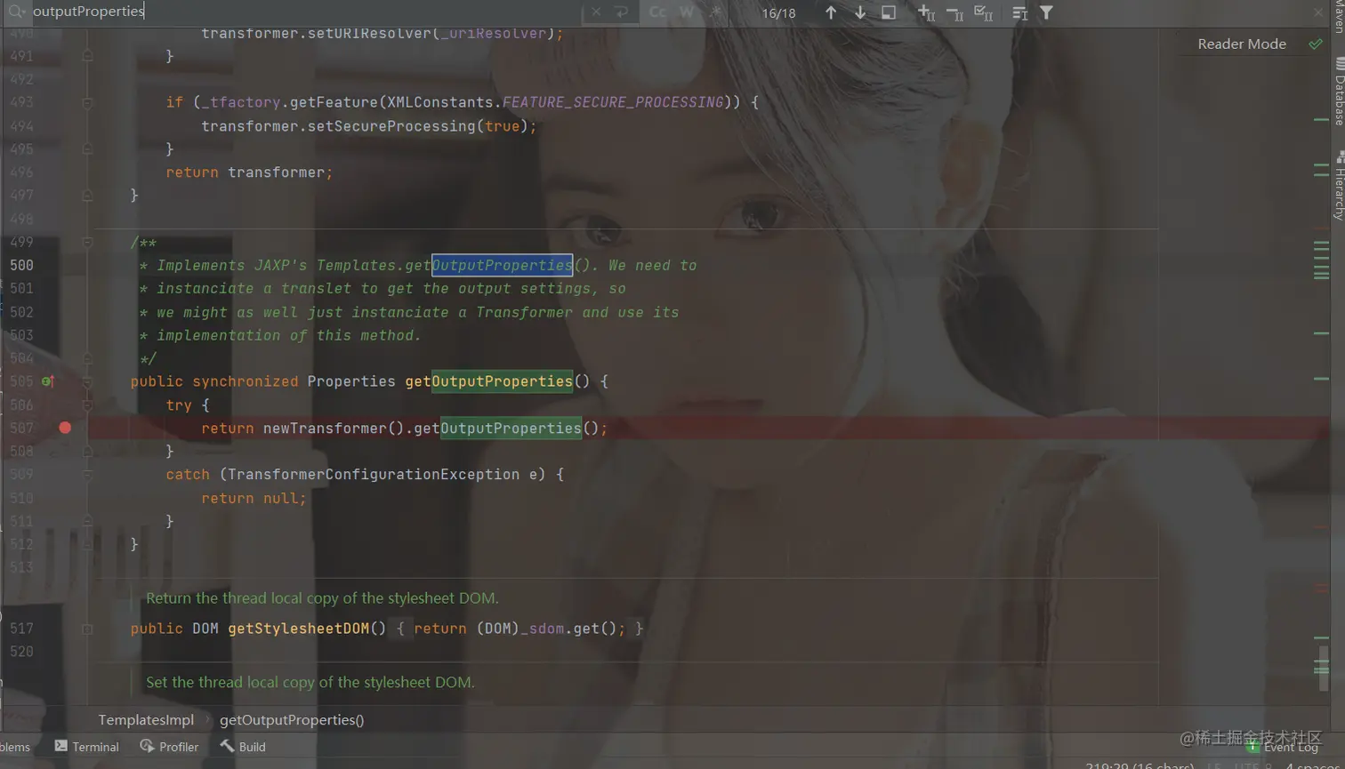 我们可以通过如上的形式去调用getOutputProperties()方法。接下来我们可以看看都什么函数调用了。