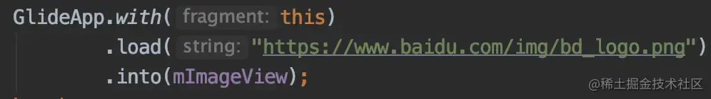 主要分成三部曲:传入 Activity 或者 Fragment、传入图片地址、传入目标的 ImageView