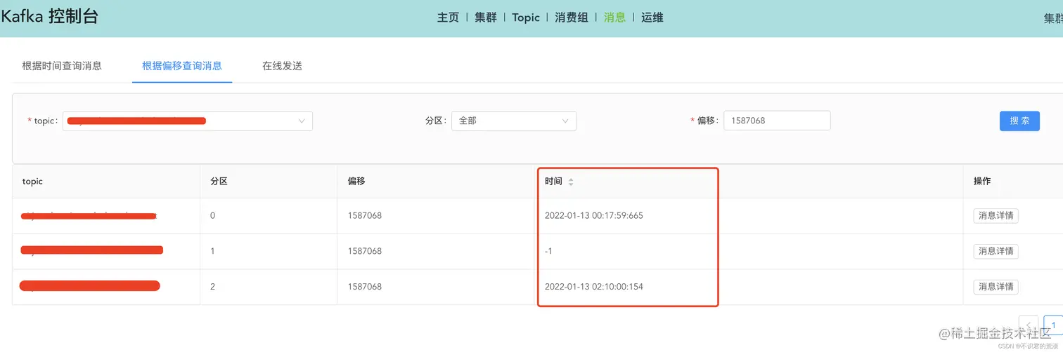上图示例用的控制台地址:GitHub - xxd763795151/kafka-console-ui: 一款快捷易用的轻量级kafka可视化管理平台