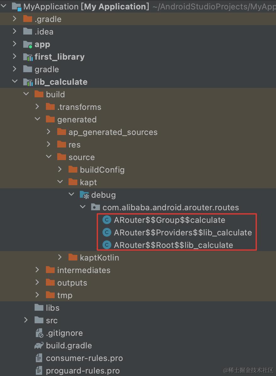 ARouter APT自动生成三个class文件(位于/lib_calculate/build/generated/source/kapt/debug/com/alibaba/android/arouter/routes目录下):