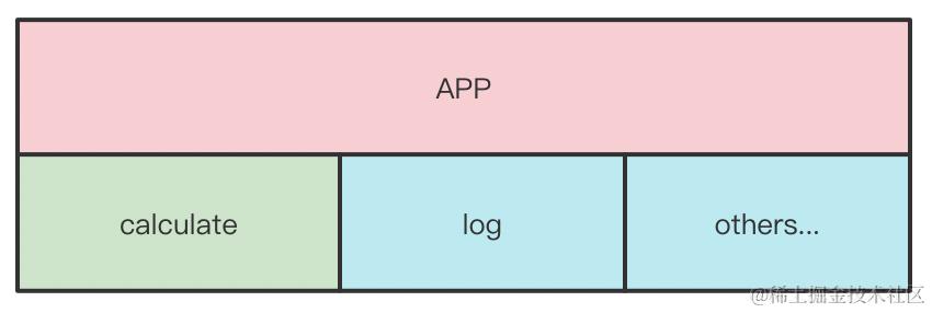例子比较简单,calculate模块提供计算的功能,再假设还有另一个log模块表示日志功能,在这种不考虑耦合的做法中,模块间的依赖关系如下: