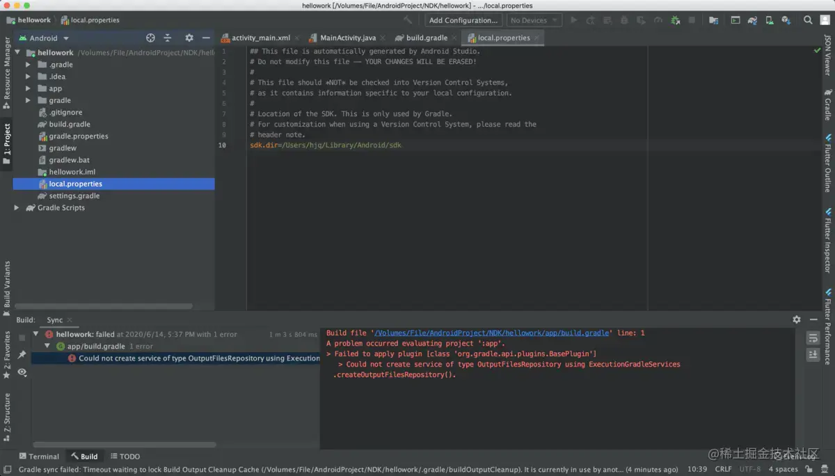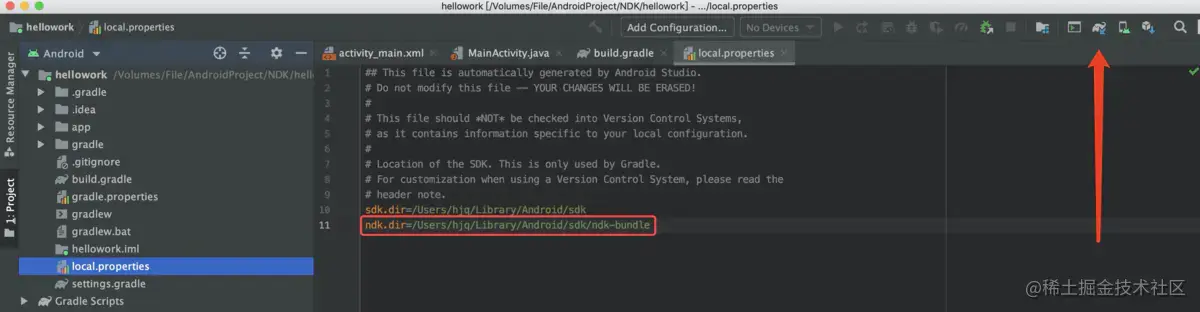 - 我们手动把 NDK 目录添加到 local.properties 文件即可,然后点击同步