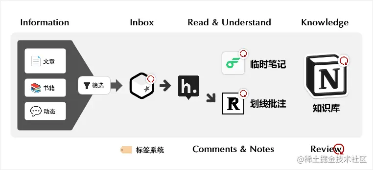 为了更好的将读到的变成自己的,近期针对知识管理的流程进行了重构升级。