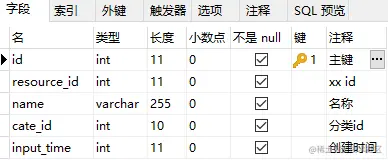 `resource_id` int(11) NOT NULL COMMENT 'xx id',