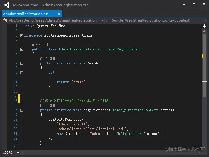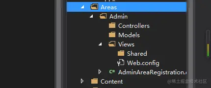 接着我们查看区域文件夹下的路由文件AdminAreaRegistration.cs