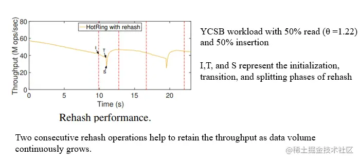 HotRing支持无锁的rehash操作。HotRing使用访问开销(即item操作平均内存访问次数)来触发rehash。