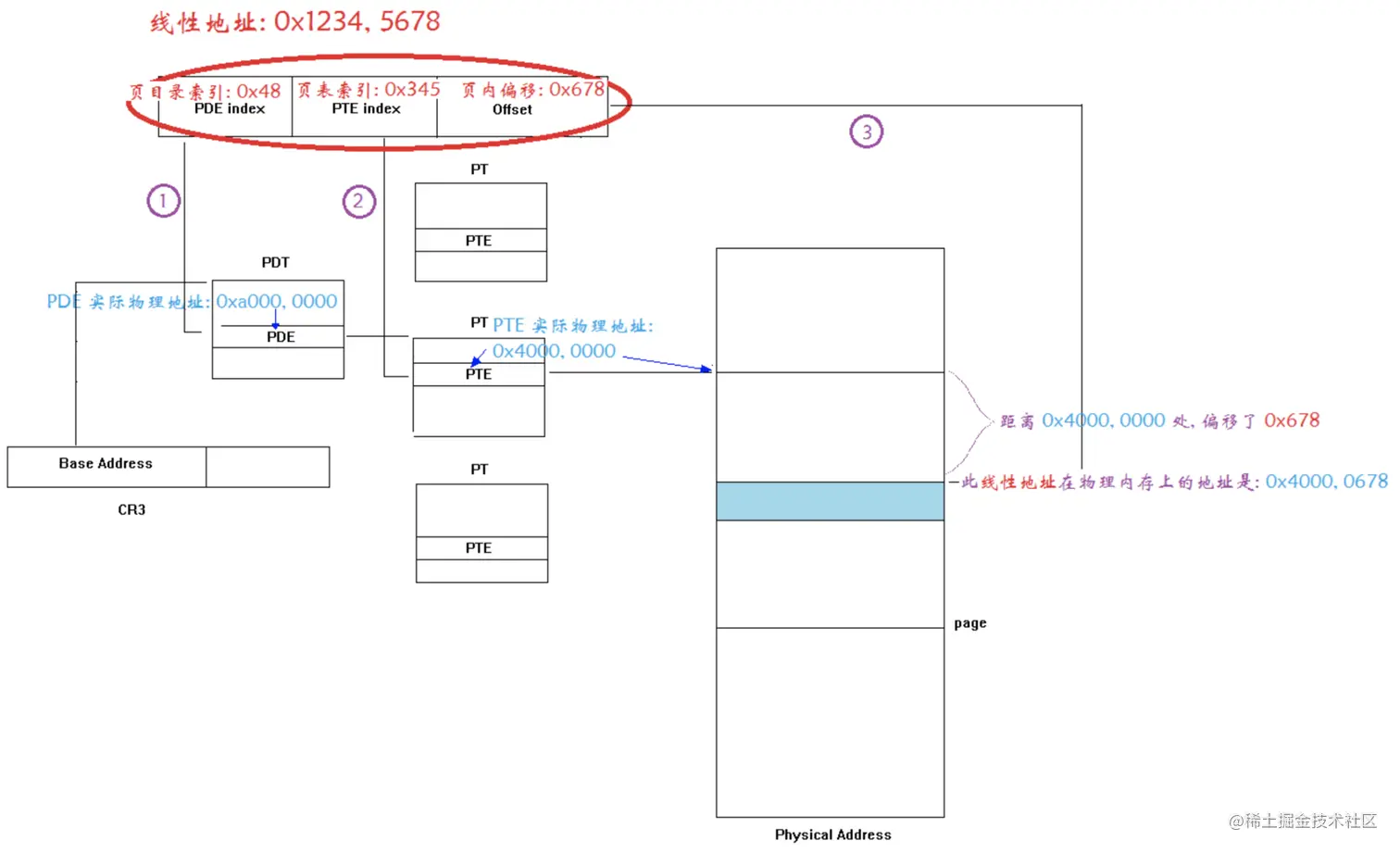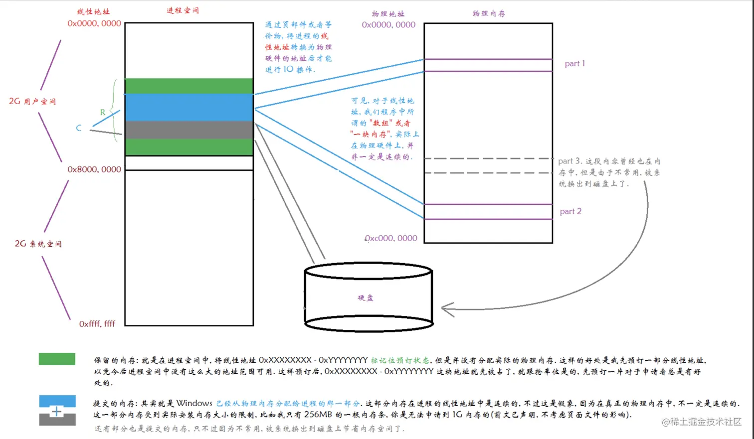 进程空间中的地址(虚拟地址)和物理内存的地址转换如下