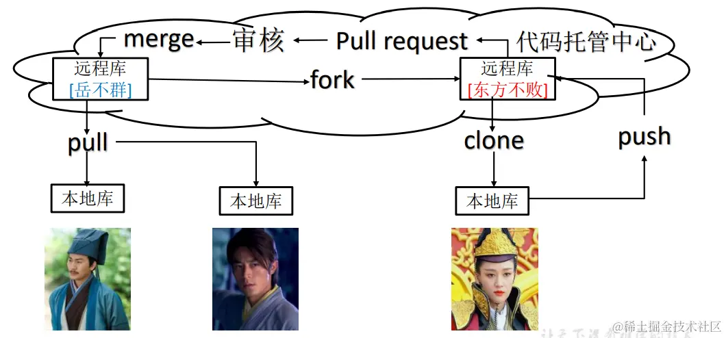 将远程仓库的地址复制发给邀请跨团队协作的人,比如东方不败。
