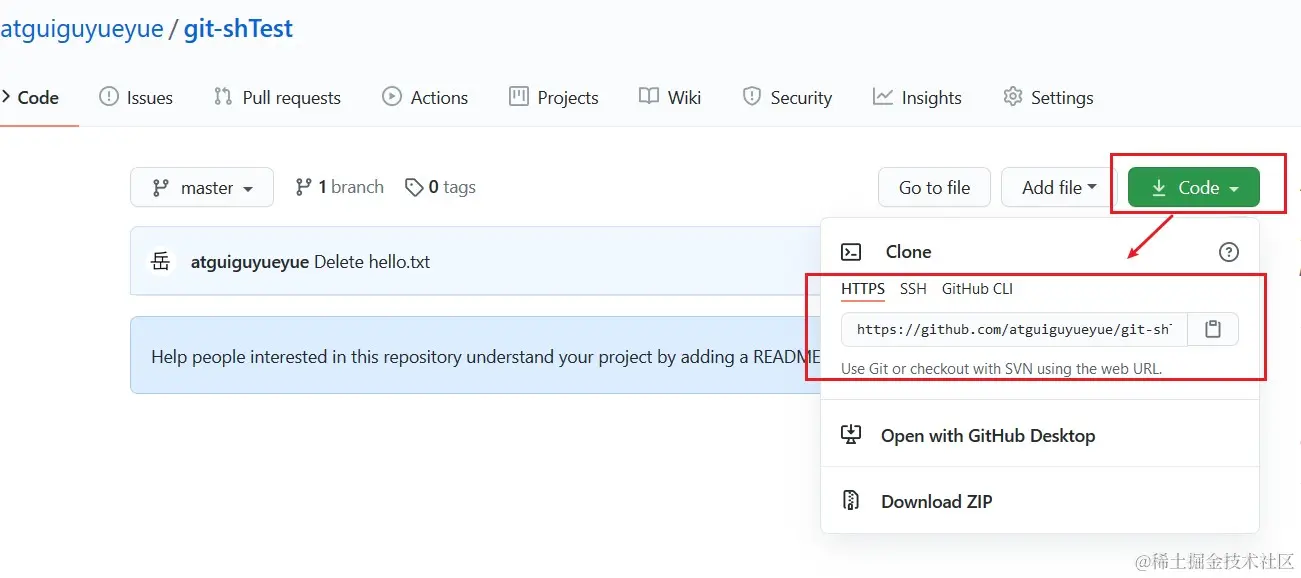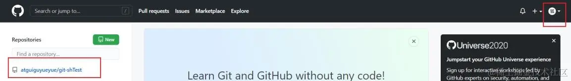 $ git clone https://github.com/atguiguyueyue/git-shTest.git