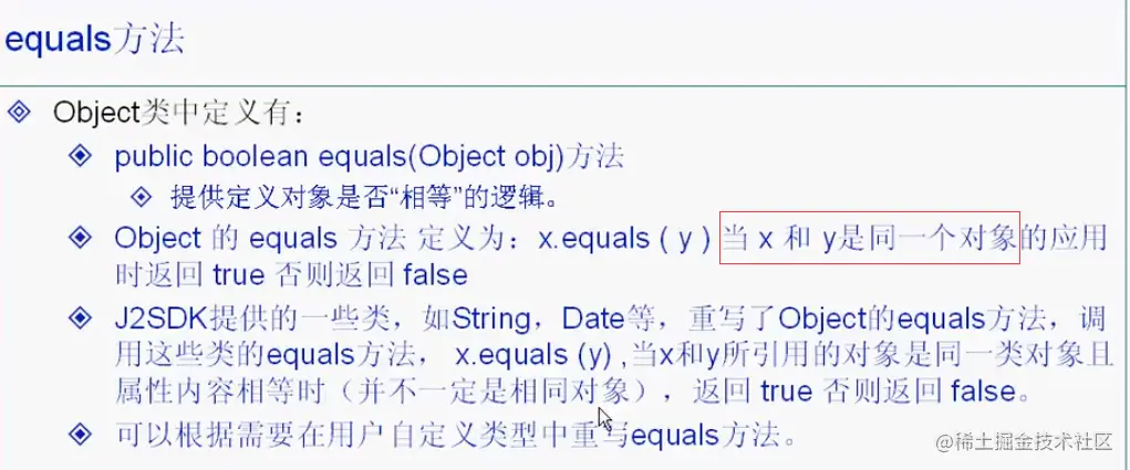 比如String类,就对该方法进行了重写,只要内容相同,就返回true