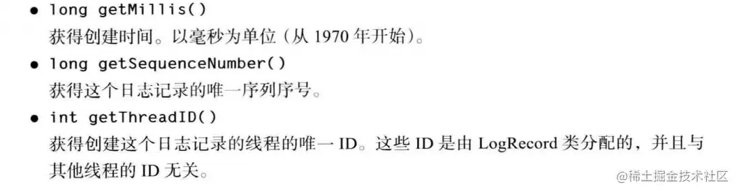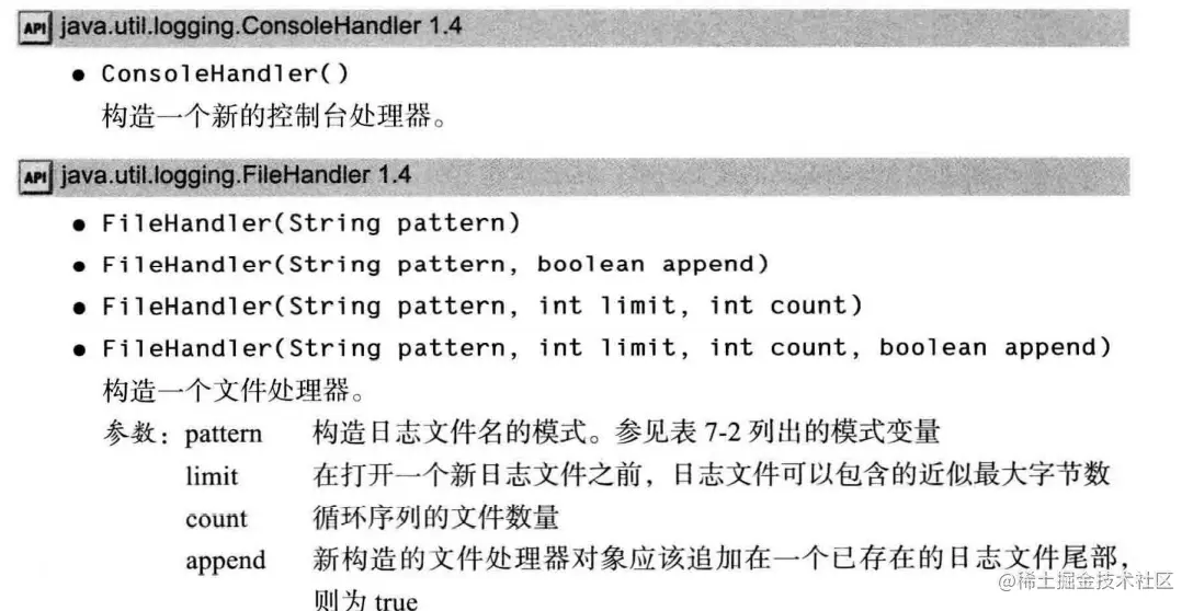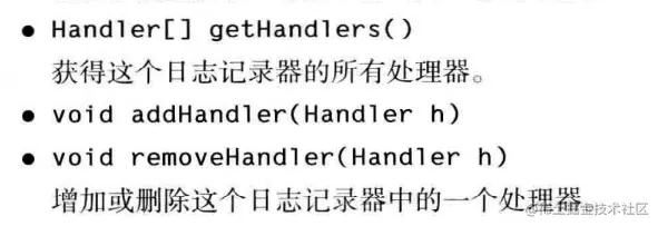 《弟哥带你学JAVA系列》 - 第六章 日志记录器 弟哥带你进大厂 2022-01-16 78 阅读1分钟 基础概念 日志记录器的层次 跟踪执行流: 用法: 处理器:负责控制日志信息,将日志信息输出至什么地方 一些方法: Logger Handler LogRecord:记录 其他东西: pattern就是文件名,傻逼翻译 docs.oracle.com/javase/7/do…