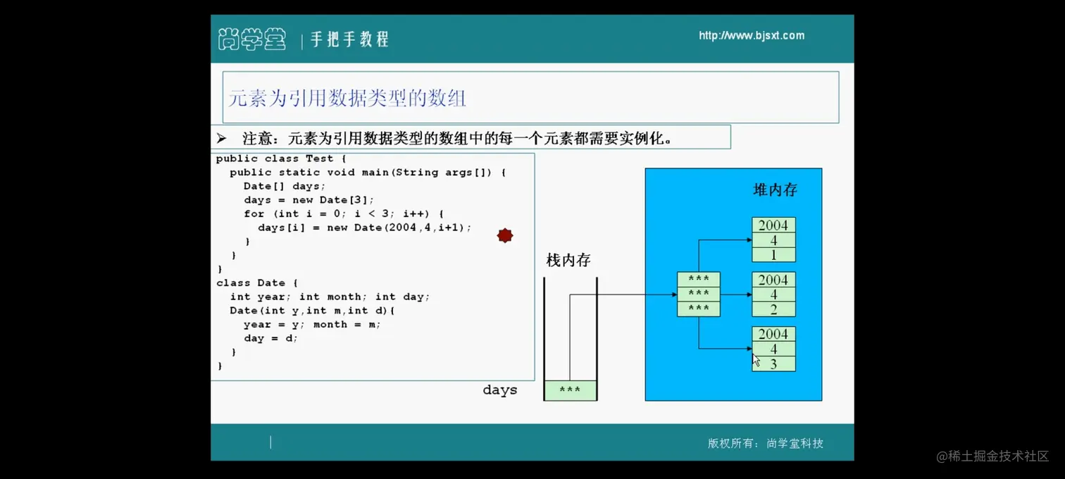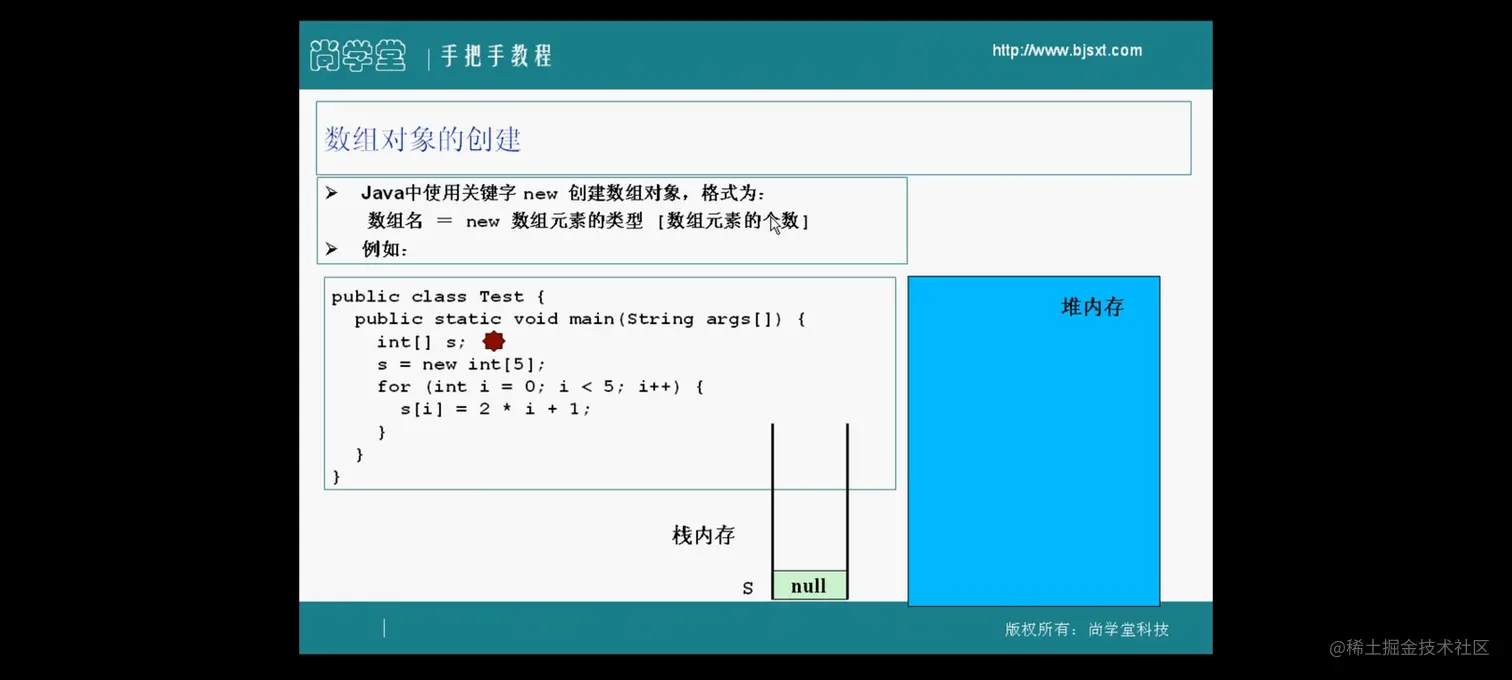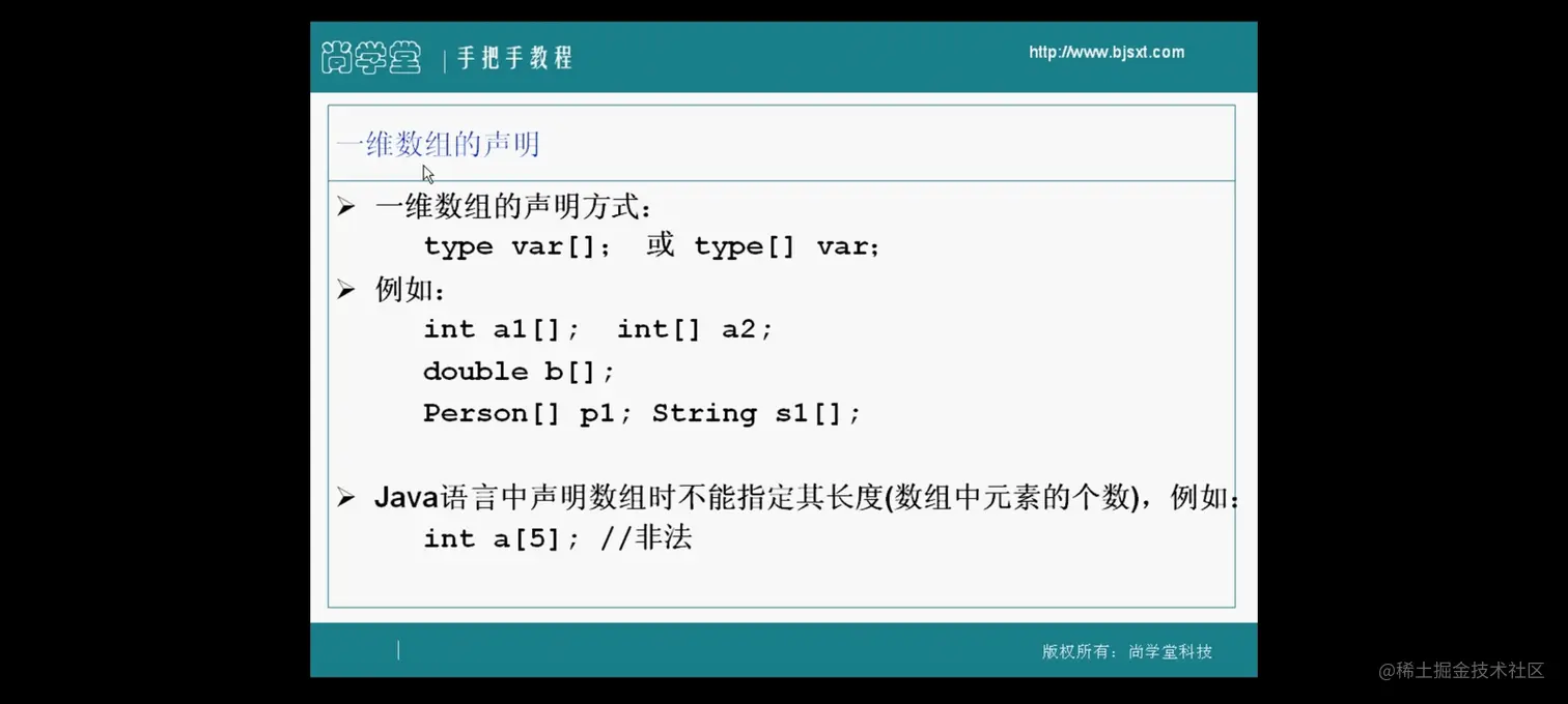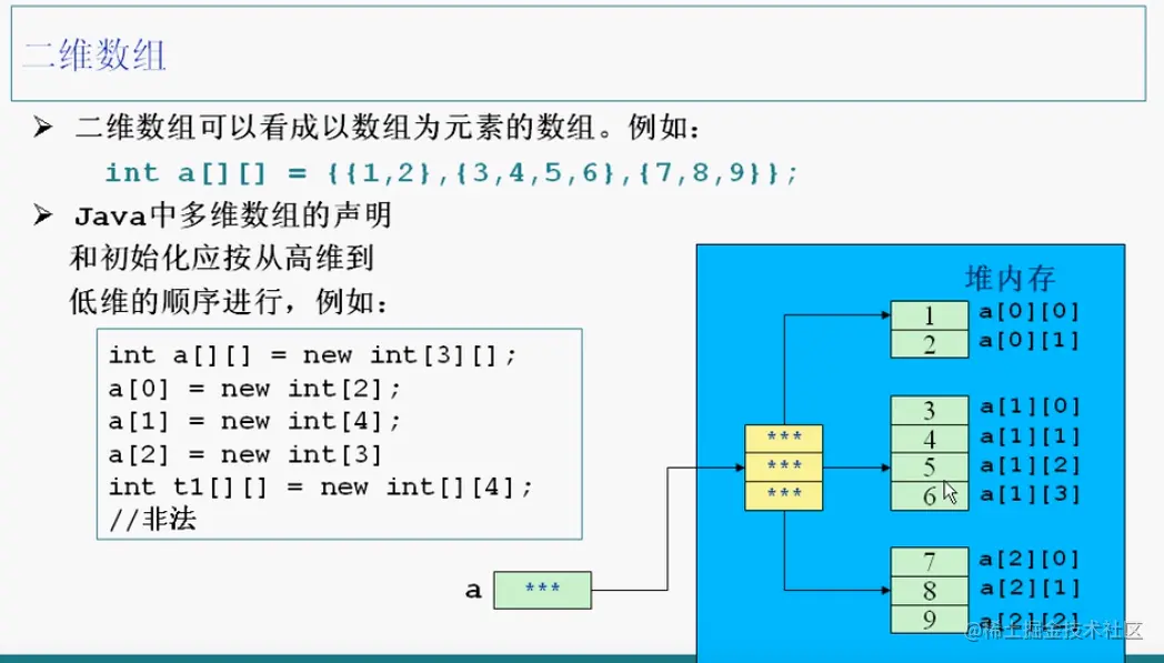 因为这种声明只是生成一个引用,真正的数组是在堆空间中生成的