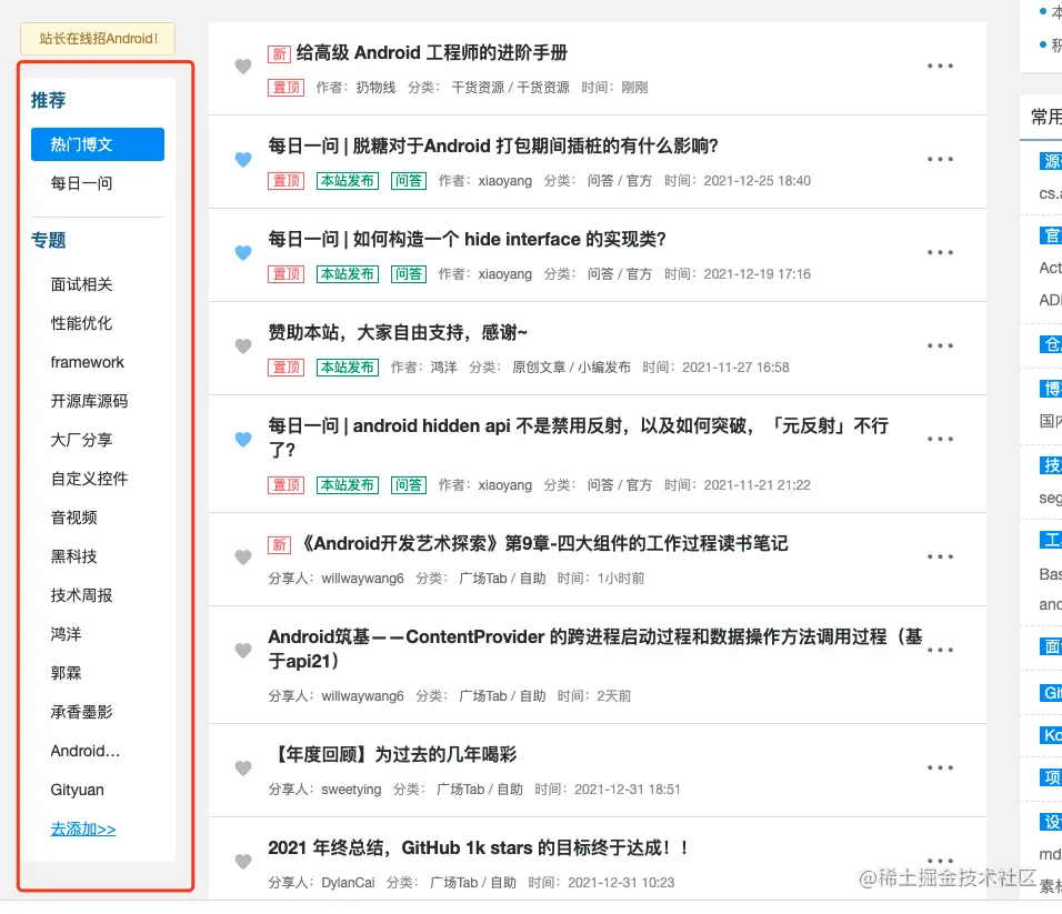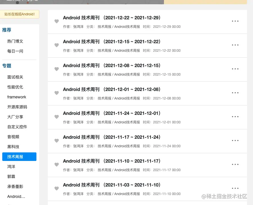 那我就会去 wanandroid.com、掘金、简书去看最近一周大家发布的文章,找一些优秀的作者,去申请转载权限。