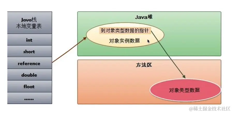 在JVM规范中只规定了reference类型是一个指向对象的引用,但没有规定这个引用具体如何去定位、访问堆中对象的具体位置,因此对象的访问方式取决于JVM的实现,目前主流的有:使用句柄或使用指针两种方式