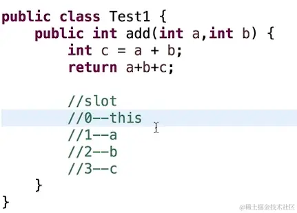 可以看到,是先给this分配slot,再给方法参数分配slot,再给局部变量分配slot,按顺序来