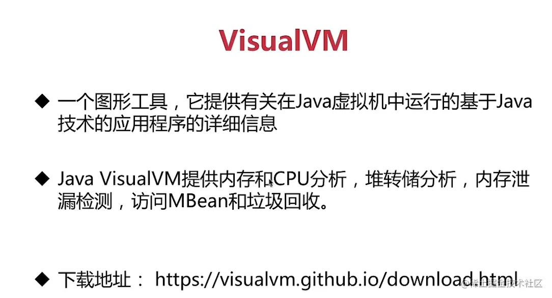 VisualVM(All-in-One Java Troubleshooting Tool)是功能最强大的运行监视和故障处理程序之一, 曾经在很长一段时间内是Oracle官方主力发展的虚拟机故障处理工具。Oracle曾在VisualVM的软件说明 中写上了“All-in-One”的字样,预示着它除了常规的运行监视、故障处理外,还将提供其他方面的能 力,譬如性能分析(Profiling)。VisualVM的性能分析功能比起JProfiler、YourKit等专业且收费的 Profiling工具都不遑多让。而且相比这些第三方工具,VisualVM还有一个很大的优点:不需要被监视的 程序基于特殊Agent去运行,因此它的通用性很强,对应用程序实际性能的影响也较小,使得它可以直 接应用在生产环境中。这个优点是JProfiler、YourKit等工具无法与之媲美的。