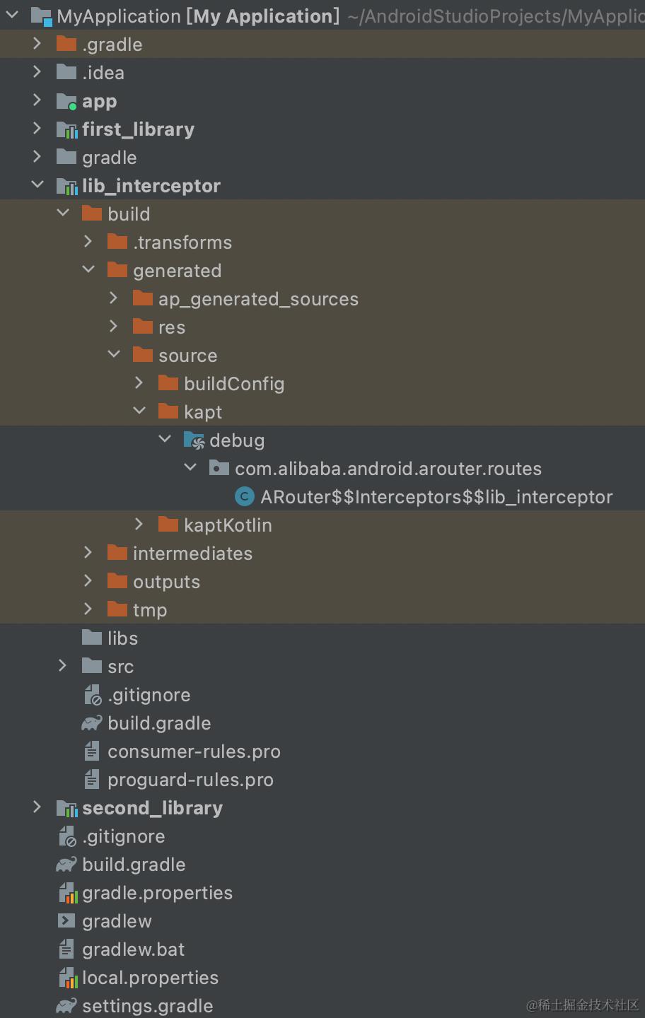 与"组件化基础ARouter(一)"类似,对于@Interceptor注解,ARouter会自动在如下位置生成代码: