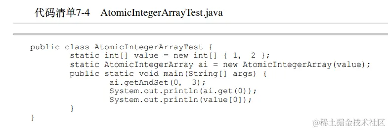 需要注意的是,数组value通过构造方法传递进去,然后AtomicIntegerArray会将当前数组复制一份,所以当AtomicIntegerArray对内部的数组元素进行修改时,不会影响传入的数组。