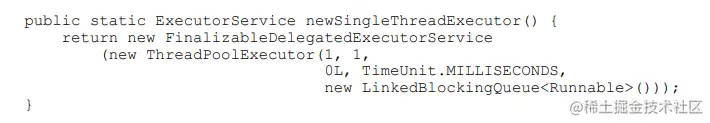SingleThreadExecutor是使用单个worker线程的Executor。下面是SingleThreadExecutor的源代码实现。