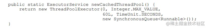 CachedThreadPool是一个会根据需要创建新线程的线程池。下面是创建CachedThread-Pool的源代码。