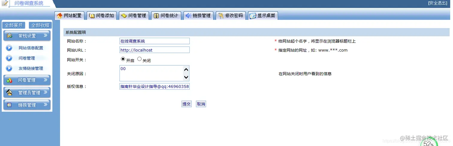 以上就是网络在线调查问卷系统的基本功能,可以根据需求进行调整。基于JSP实现的在线调查问卷系统。