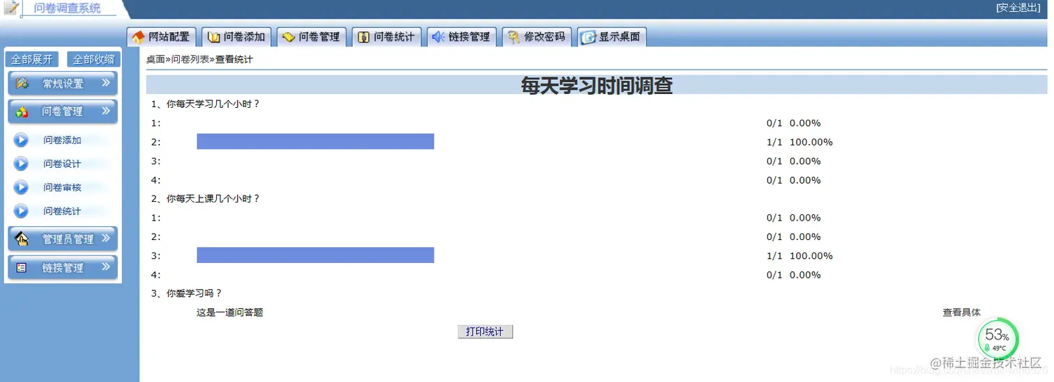 问卷统计:统计每个调查问卷的情况