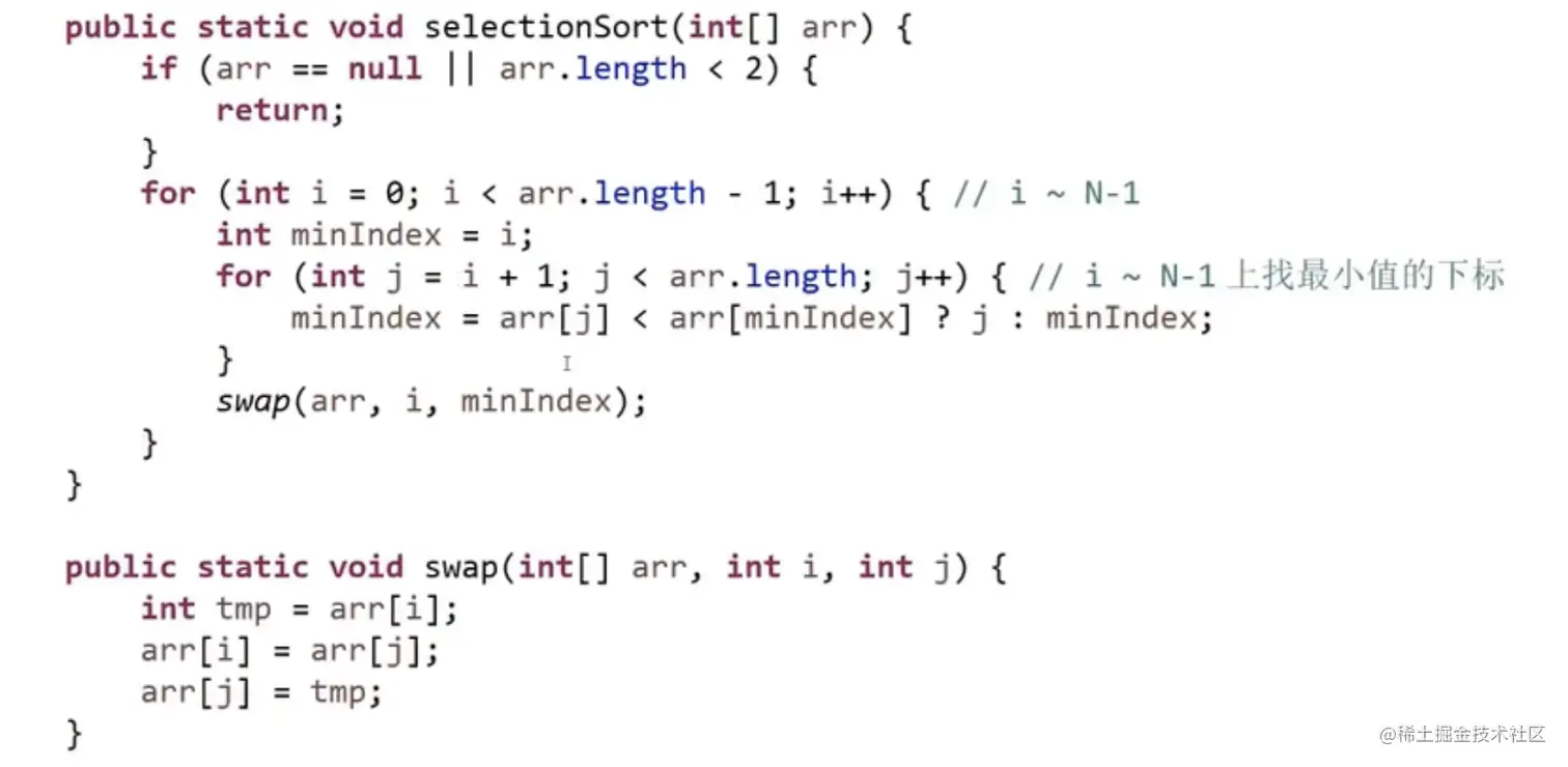 在i到N-1范围选一个最小值 并且把最小值放到i位置上去