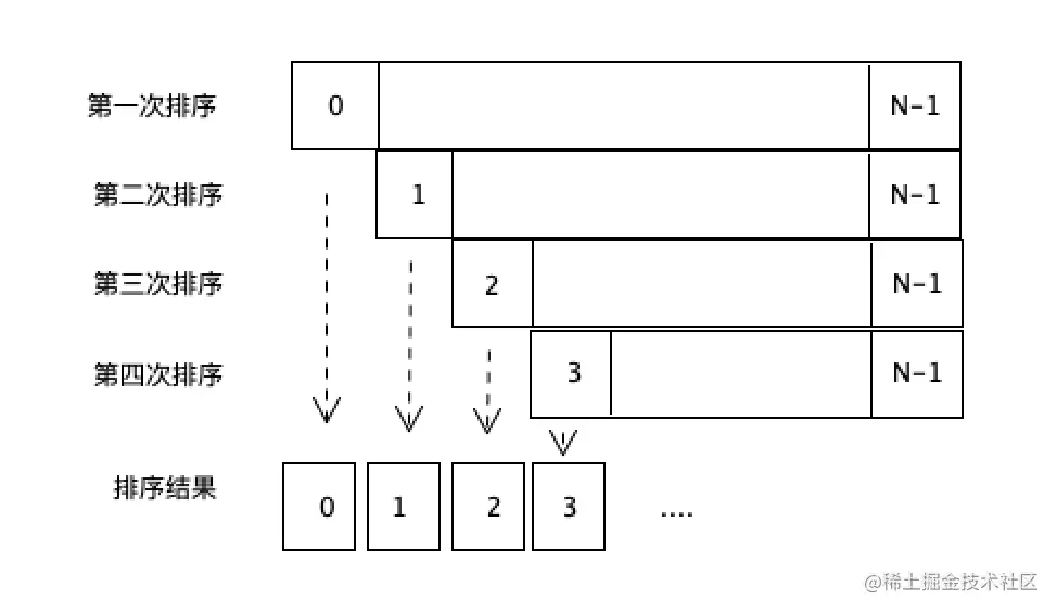 第一次排序在0~N-1个数上 确定了N-1位置上的数