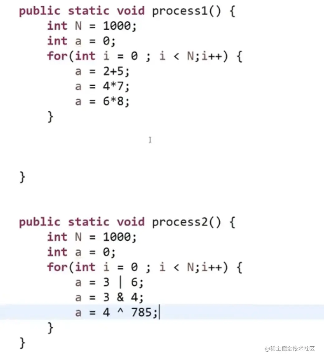 这两个算法 每个算法的常数操作执行O(N)次 每次都进行三个常数次操作 所以这2个算法的时间复杂度都是O(N)的 通过理论比较不出只能实际跑一下
