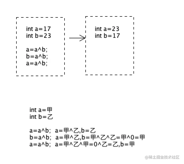 第一行 a=a^b a为甲 b为乙 a=a^b即a=甲^乙,b为乙