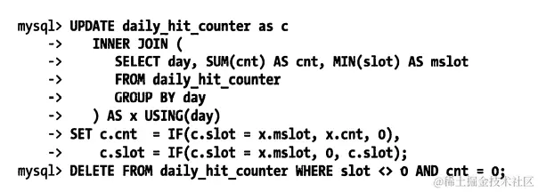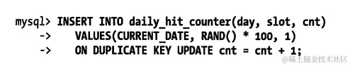 在这个场景中,可以不用像前面的例子那样预先生成行,而用ON DUPLICATE KEYUPDATE代替: