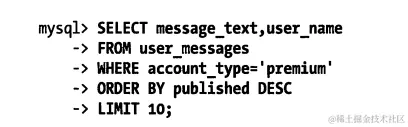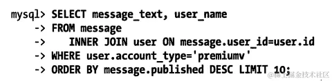要更有效地执行这个查询,MySQL需要扫描message表的published字段的索引。对于每一行找到的数据,将需要到user表里检查这个用户是不是付费用户。如果只有一小部分用户是付费账户,那么这是效率低下的做法。