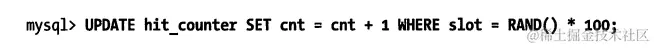 问题在于,对于任何想要更新这一行的事务来说,这条记录上都有一个全局的互斥锁(mutex)。这会使得这些事务只能串行执行。要获得更高的并发更新性能,也可以将计数器保存在多行中,每次随机选择一行进行更新。这样做需要对计数器表进行如下修改: