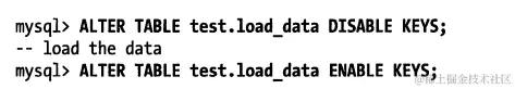 为了高效地载入数据到 MyISAM表中,有一个常用的技巧是先禁用索引、载入数据,然后重新启用索引: