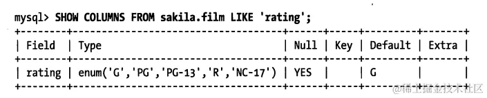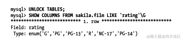 下面以给sakila.film表的rating列增加一个常量为例来说明。当前列看起来如下: